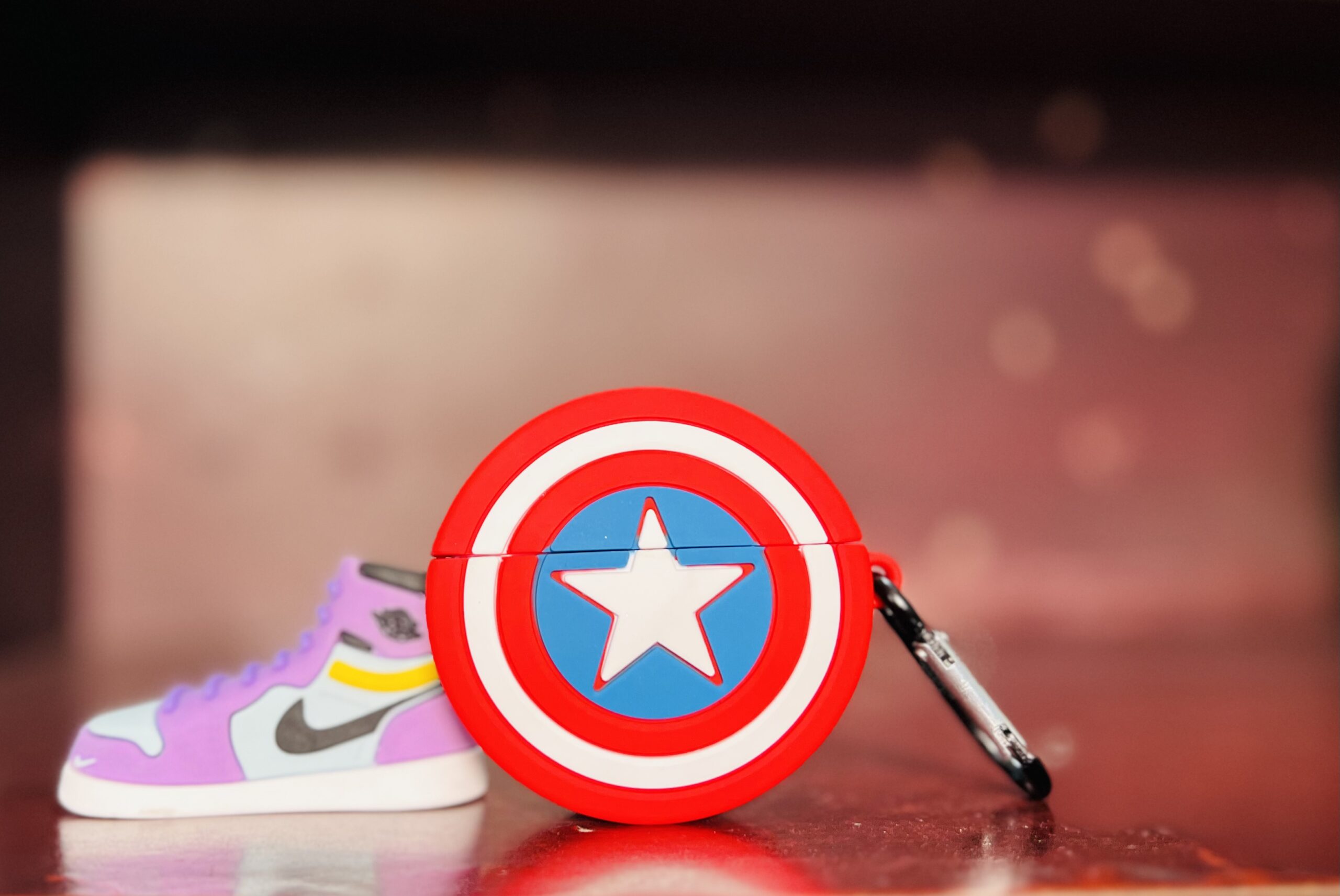 Premium Silicone Aaptain America shield Case (airpods Pro) with holding clip